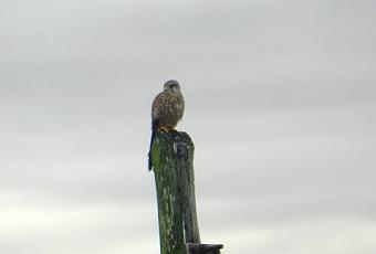 El cernícalo es un depredador generalista, capaz de atrapar un gran número de presas, desde pequeños lagartos y lagartijas, pasando por micromamíferos a gran variedad de insectos, incluso algunas aves. La única limitación parece ser el tamaño. En otras épocas del año su forma preferida de acecho es el cernido en vuelo, muy característico de la especie y que le proporciona su nombre vulgar. Pero en esta época también otea bastante desde posaderos, muchos de los cuales tienen su origen en el hombre, como el caso de la foto anterior o este joven que sorprendí en una torre de la luz.
