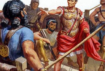Mientras el barco en el que viajaba costeaba la isla de Farmacusa, vieron unos barcos que se aproximaban con rapidez. El barco de los romanos era lento, así que no pudieron escapar de los piratas.