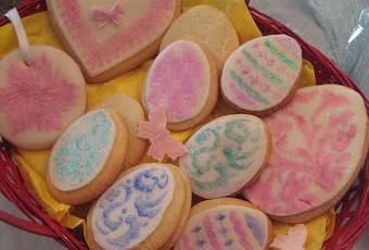Para celebrar la Pascua nada mejor que una surtida cesta con huevos, corazones y detalles para colgar en la venta. Lo bueno de todos ellos es que son comestibles y son galletas. Sí, galletas decoradas que creo me han quedado bien bonitas. He cambiado de masa de galletas y os dejo la receta. Me gustan mucho las dos que hago, pero por variar un poco, aunque son muy similares
