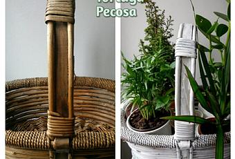 Vamos a convertir esta cesta color madera con bambú color marroncillo...en una cesta vintage, que predomine el blanco pero...dejando una capa abajo de su antiguo color, con esto rescatamos el vintage.