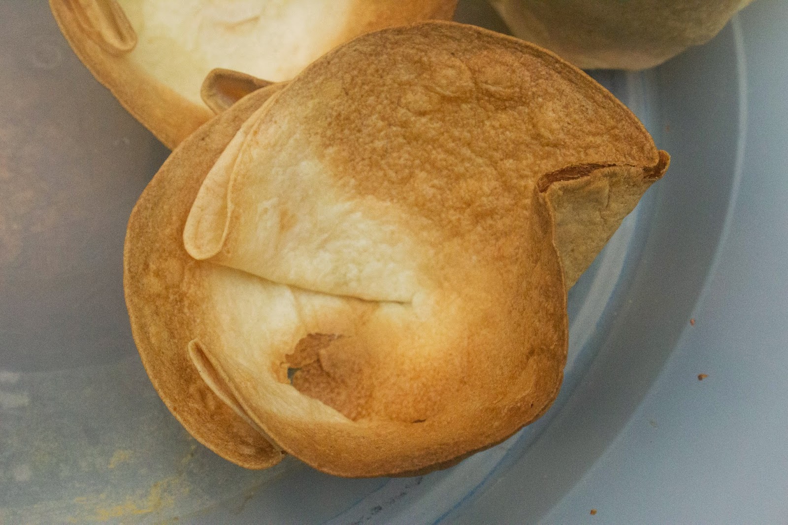 Para que se queden abiertas y luego puedas rellenarlas tienes que poner una bola grande de papel albar y doblar los estremos. Mételo 5 minutos hasta que veas que todos los bordes se doran. Luego cogelos sin quemarte y les das la vuelta ya directamente en la bandeja de horno para que se hagan por abajo.