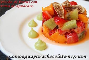 Sin enrrollarme más porque va a parecer una despedida y no un hasta pronto os dejo la receta de hoy, un delicioso y refrescante ceviche de frutas. Yo he utilizado estas frutas pero se puede hacer con cualquier fruta de temporada. Os aconsejo que lo probéis porque os va a sorprender seguro.