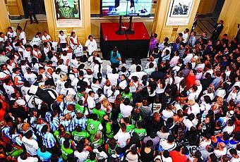 La Presidenta volvió a arremeter contra los empresarios que aumentan los precios. Contó que Carrefour y Coto encabezan el ránking de denuncias, aunque también cuestionó a La Anónima y volvió a reprender a Hiper Tehuelche, la cadena del diputado radical santacruceño Eduardo Costa. También se acordó del ex ministro de Economía, Domingo Cavallo, quien auguró que el dólar llegaría a los 40 pesos y lo sumó a la lista de “desestabilizadores” junto a los bancos y los mercados financieros. “Nunca fueron los gobiernos los que volaron por los aires, siempre fueron los pueblos los que volaron por los aires y cuatro o cinco vivillos se quedaron con lo que era de todos”, replicó la Presidenta, que invocó a Juan Domingo Perón y Raúl Alfonsín por las luchas que dieron contra la especulación financiera y volvió a convocar al pueblo a “no tener miedo” y “empoderarse” en “esta tarea que tenemos que hacer contra los especuladores, contra los malos empresarios, contra los malos comerciantes”. Amado Boudou, citado a declaración indagatoria por la Justicia, mantuvo un perfil bajísimo, mezclado entre funcionarios: nunca fue enfocado en la transmisión oficial.