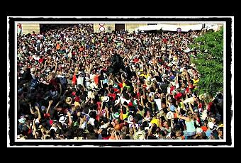 "...Cabalgaba el agarenosobre una yegua de Córdobacon la crin hasta el estribo,y hasta la tierra la cola;y como el cielo la empapaen las aguas que la mojan,la cola y la crin parecende espumas, algas y esponjas.La plaza cercan los moros,donde dos a dos arrojanlos cristianos que cautivan,los cautivos que sollozan.Allí mujeres y ancianos,allí vírgenes y esposas,juntan a golpes y a gritosentre algazara y chacota..."