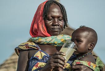 Achta Fadoul da de beber el agua del pozo a su hijo, en Midjiguir, a 23 kilómetros de Mangalmé, en el Chad. (Foto: Pablo Tosco, cortesía de Oxfam Intermón)