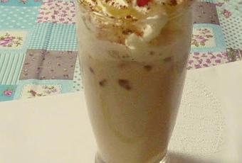 Volvemos a ponerlo al fuego y añadiremos la leche y el azúcar y retiramos cuando empiece de nuevo a hervir. Colamos y dejamos enfriar.A continuación, vertemos la mezcla en la licuadora e incorporamos las tres tazas de hielo y batir.Servimos en un vaso y agregamos un poco de nata montada por encima. Le daremos el toque final con una pizca de canela o chocolate en polvo.