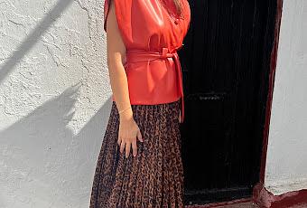 Se trata de un modelo de inspiración años 80, con el encanto de una prenda realizada en piel vegana, que en origen era un vestido de línea recta en la fada. Y como a mi este tipo de faldas no me gustan como se adaptan a mi figura, lo tuve claro desde el principio, ¡me gusta como chaleco!Así que busqué la tela en la tienda de referencia de Fibre Mood en España, que es Fabric Mumu donde pude conseguir la original y en cuanto la tuve me puse con él.Tuve la mala suerte de que mi máquina la tengo actualmente en reparación, así que se me ocurrió utilizar la vintage de mi abuela, una Singer de cabeza negra que ya te he enseñado por aquí, y ¡qué experiencia!Gracias a que además contaba con agujas especiales para piel y para esta máquina. Disfruté de la costura pero bien.Y eso que yo no le tengo ninguna simpatía a la polipiel, pero es que esta tela no tiene nada que ver. ¡Es de una calidad que sorprende!Y si te apetece ver las telas las tienes en www.fabricmumu.com y ojo que además tienes ahora un 10% de descuento con el CÓDIGO:COLOURSFORBABY10Y ahora os enseño más fotos de este chaleco, que por suerte es una prenda que combina fenomenal con muchas de las prendas de mi armario.