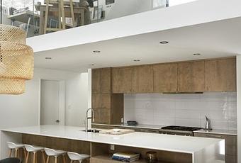 Los interiores son iluminados, blancos y el mobiliario de madera natural, la casa tiene tambien un estudio para una de las artistas de la familia, y un garaje para el cuidado de los vehiculos.