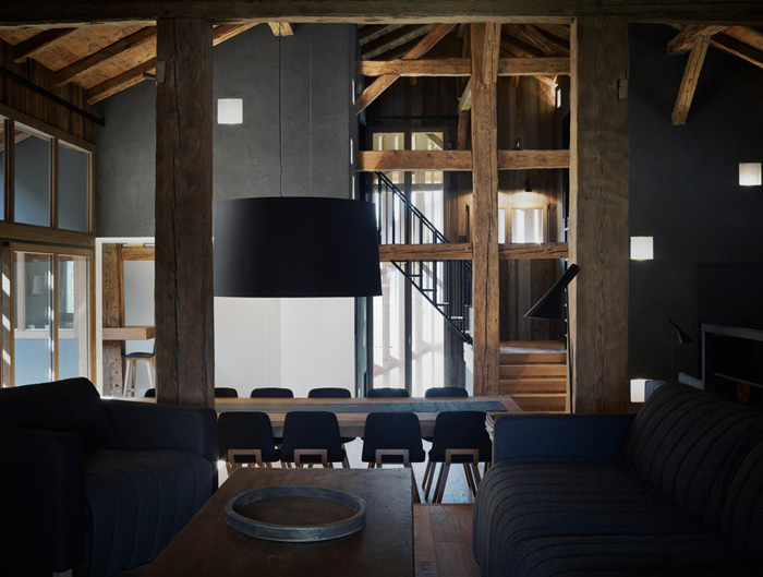 En un poblado alpino, y con una gran tarea se remodelo este antiguo pajar que data de 1824, para convertirlo en un interesante establecimiento para alojar esquiadores en la temporada. Se ha mantenido todas las columnas y vigas originales asi como el entablado del techo y tambien sus pisos de maderas de abeto, imprimiendole un estilo rustico moderno