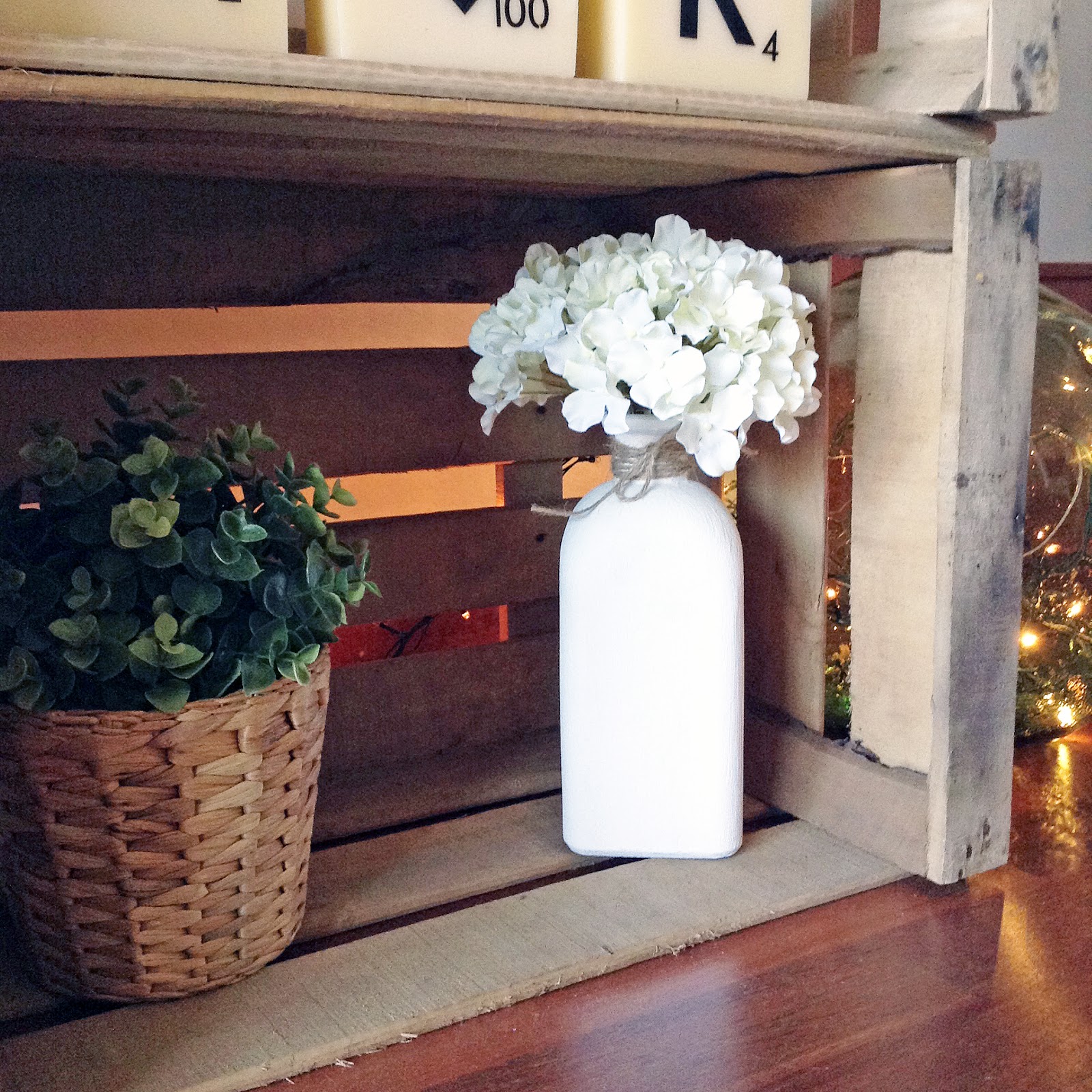 El fin de semana me dio por cambiar la decoración de un rinconcito de casa. Tenía unas cajas de fruta y un jarrón que no sabía qué hacer con él. Tampoco quería complicarme mucho la vida, así que como no, el chalk paint se apoderó de mi. No no, tampoco me volví loca... solo lo pinté.
