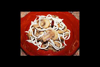 ingredientes, entre ellos los champiñones con los que hacen una estupenda