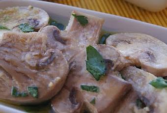 Mezclamos el resto de ingredientes (picando fino el perejil y el ajo). Escurrimos los champiñones y les añadimos la mezcla (debe quedar casi cubierto) para que cojan bien el sabor.