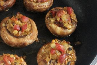 Cómo hacer champiñones rellenos con toque picante de bravas