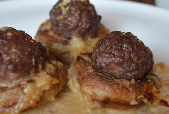 Si te gustan los champiñones, las albóndigas y las salsas ricas, ricas, esta es tu receta. Lo mezclamos todo y preparamos estos ricos champiñones rellenos, toma ya!Ingredientes: para 2 personas8 champiñones grandes (para rellenar)Para las albóndigas:250 gr carne picada de ternera1 loncha de beicon1 diente de ajosal y pimientaPara la salsa:1 cebolla 1 diente de ajo200 ml de nataaceite de oliva1 cucharada de vino blancosal y pimienta