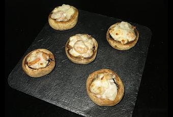 Elaboración:Lo primero que hacemos es limpiar los champiñones y quitarles el rabo, rocíamos una bandeja apta para horno con aceite y los colocamos encima, salpimentamos y metemos al horno con calor arriba y abajo durante diez minutos a 200º.
