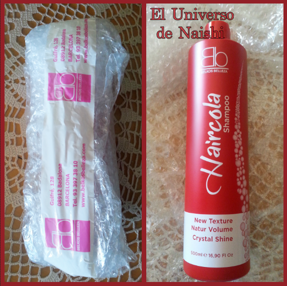 El sorteo era de un champú de cola de la marca Belkos Belleza, una empresa de Barcelona que también tienen champú de cebolla, mandaron rápido el envío y llegó genial envuelto como veis en la imagen izquierda, a la derecha el bote de 500 ml.