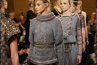 Los tweeds insignia de la casa no faltan en esta colección, esta vez con un fino hilo de oro que le dan un cierto aire oriental.
