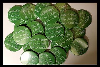 En este caso nos pidieron una treintena de chapas personalizadas con el famoso eslogan de la marea verde "escuela publica de todos para todos" para un colegio de Málaga, y bueno...asi quedaron!