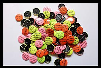 En esta ocasión, Mónica nos contacto desde Valladolid, para encargarnos sus chapas de boda , especialmente las queria en tamaño pequeño (25mm) y con acabado Neón, en cuanto a las frases, hecho un ojillo a nuestro post Frases para chapas de boda y otras tantas suyas. Esperamos lo pasen fenomenal en la boda! Y si has llegado hasta aqui, queriendo hacer chapas para tu boda, puedes hechar un ojo a nuestras recomendaciones a nuestros precios o incluso frases para chapas de boda :)