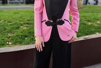 Otro look con pantalones coulotte de Le Couturier. Camiseta de La Casita de Wendy y chaqueta preciosa de La Condesa. Los pendientes son de Fauna y Flora como el colgante Géminis y el otro colgante es de Mediterraneo Art.