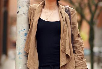 Today, I`m wearing this jacket with a total black look. I love casual looks but I prefer wear these with heels .