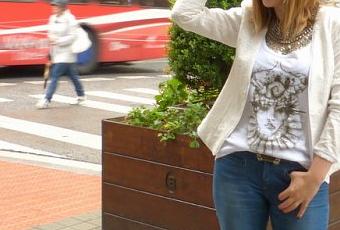Había pensado en otro look pero de repente cambió el tiempo y hubo que cambiar de planes, así que empecé por los vaqueros. Me apetecía salir de los pitillos y elegí este pantalón de pata ancha, mi nueva camiseta killer story by Peio Durán (otro look aquí) y para darle un toque más vestido me puse la chaqueta blanca de lentejuelas. Como el pantalón es bastante largo tuve que recurrir a la sección de super taconazos pero para no renunciar a la comodidad me puse cuñas, luego el collar de monedas, el sombrero y las gafas para darle un toque más urbano.