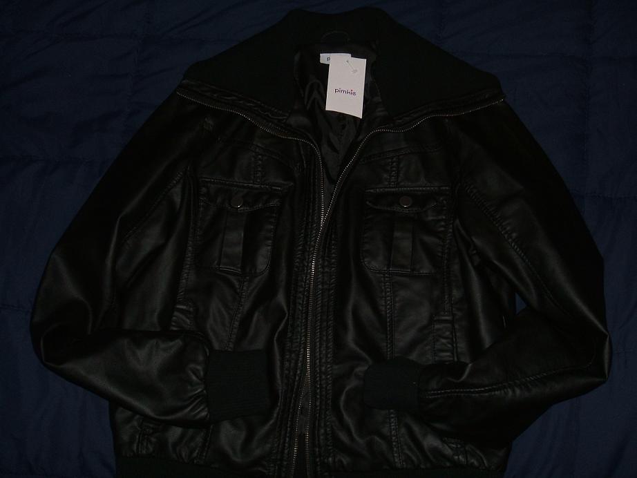 El regalo ha sido esta chaqueta de la marca Pimkie. La verdad es que queda chulísima puesta. Es negra y lleva los puños, la parte de abajo y el cuello como de jersey.