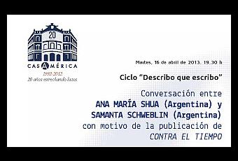 Este martes día 16 de abril, dentro del ciclo Describo que escribo organizado por la Casa de América, tendrá lugar la charla entre las escritoras Ana María Shua y Samanta Schweblin, con motivo de la publicación de la obra Contra el Tiempo. Es una buena ocasión para charlar de literatura y aprender un montón de cosas de la mano de dos de las escritoras argentinas más importantes.
