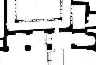 Roda de Isávena, Catedral: aparece dibujada girada noventa grados respecto la convención, que las suele representar con el eje mayor perpendicular a la base del papel. Esto es porque, en realidad, dicho eje suele coincidir con la secuencia acceso-nave-altar. Aquí ésta está completamente trascendida (desde un punto de vista muy moderno) al estar la nave (y el acceso al claustro) girados noventa grados respecto del acceso. Secuencia espacial muy parecida al ingreso del Pabellón de Barcelona de Mies van der Rohe, entre otros edificios memorables.