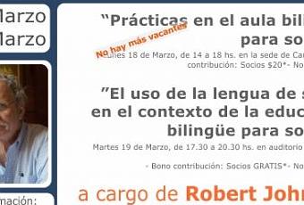 Canales Asociación Civil, comienza su ciclo de capacitación 2013 con la presencia de Robert “Bob” Johnson en Argentina. Los días 18 y 19 de marzo, el Psicólogo y Doctor en Antropología con especialización en Lingüística que ha desempeñado en variadas funciones en la Universidad de Gallaudet en Washington, disertará sobre la educación bilingüe de las personas sordas y el uso de las lenguas de señas en el aula.Johnson ha estudiado no sólo la lengua de señas americana sino también ha colaborado en estudios sobre la lengua de señas argentina. El artículo Develando el currículum: principios para un mayor logro en la educación del sordo escrito por él, Erting y Liddell en 1989, es uno de los pilares bibliográficos en la educación bilingüe para los sordos.El 18 de marzo, desarrollará el taller Prácticas en el aula bilingüe para sordos, con capacidad limitada para 15 personas. Tratará temas educativos actuales y se recorrerán los diversos procesos necesarios para construir junto a los asistentes maneras de poner en práctica la educación bilingüe para sordos en el aula. Este encuentro será en la sede de Canales de 14 a 18 hs.El 19 de marzo, Johnson disertará sobre “El uso de la lengua de señas en el contexto de la educación bilingüe para sordos”. Presentará los usos de la LSA en el aula a través de situaciones prácticas y sus aspectos lingüísticos; expondrá sobre el español señado y comentará los modelos educativos desarrollados en diversas partes del mundo y sus resultados, para presentar un diagnóstico sobre la situación actual. Este encuentro se posible gracias a la colaboración de Rotary International a través de su Distrito 4890 y UCES (Universidad de Ciencias Empresariales y Sociales) que tendrá la gentileza de recibirnos en su auditorio de Paraguay 1457, C.A.B.A. La charla comienza las 17.30 hs.Ambas actividades organizadas por Canales, requieren inscripción previa, tienen cupos limitados y un bono contribución destinado a solventar el programa de capacitación que la asociación realiza. Los interesados podrán encontrar más información enwww.canales.org.ar, o bien solicitarla por mail a [email protected]http://www.hacercomunidad.org/escribi/articulo/15205