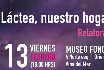 La charla “La Vía Láctea, nuestro hogar en el Universo” será dictada por Irma Fuentes Morales (licenciada en Física mención astronomía y Magíster en Astrofisica de la Universidad de Valparaíso) y se enmarca dentro del ciclo de charlas Viernes de Cultura + Ciencia.