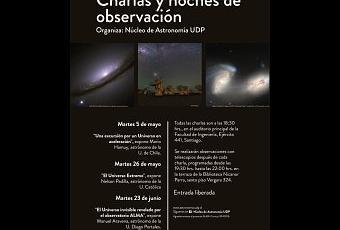 El Núcleo de Astronomía de la Universidad Diego Portales (UDP) invita a todos quienes estén interesados en la Astronomía al primer ciclo de charlas 2015, las cuales irán seguidas de observaciones astronómicas.