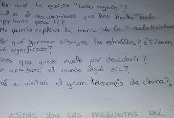 Algunas de las preguntas que los alumnos de sexto del Colegio Público Luis de Góngora en Almodóvar del Río (Córdoba) tenían para mi charla virtual desde el AAT el viernes 11 de marzo de 2016. Crédito: Rafa del Toro.
