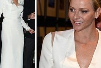 Princess Charlene of Monaxco wore a cut out dress on May 10, 2013 while attending The White Feather Foundation Charity Ball 2013 at Ballet de Montecarlo.