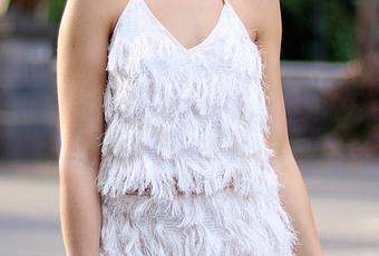 Y aquí el look con el peinado que les enseñé a hacer ayer. Me encanta este look con pequeñas notas de años veinte. Me encantan los vestidos estilos charlestón aunque a parte de este, sólo tengo otro dorado que conseguí en rebajas (y dicho sea de paso, ustedes nunca han visto por aquí!) y creo que son tremendamente simples pero derrochan mucho estilo y mucha clase. Algunas le tienen miedo a los tonos claros para la noche o para épocas como las fiestas de navidad, pero a mi me parece que queda muy bien y además nos salimos de los típicos tonos negro-rojo. Obviamente, un vestido estilo años 20 tiene que ir acompañado de un peinado con ondas al agua y raya al lado bien marcada, o un recogido con ondas. Rematar con un abrigo de pelo es lo ideal, aunque la verdad que para este color en concreto yo no encontré ninguno en mi colección que me gustase especialmente y estamos teniendo unos días de calor que nos hace prescindir aún de abrigos peludos y medias. Si son más altas que yo, yo dejaría este vestido suelto, sin cinturón, pero para mi gusto y mi altura quería un poquito menos de altura y aproveché un cinturón para encontrar ese efecto. Algunas pueden decir "te hace parecer más gorda" No digo que me lo vayan a decir en plan mal eh? Pero es un vestido con volumen ciertamente, eso sí, aunque tenga volumen, o lo recomiendo porque tengas o no tengas chicas, vas a disimularlas con mucha clase, o no? Bueno, eso es cuestión de gustos ;) Espero que os guste! Un besote! PD: El vestido hay que dejarlo estirar para que los flecos se separen bien y demás, yo es que voy con mucha prisa siempre XD jajaja