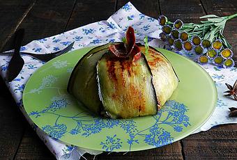 Tapamos con los sobrantes de berenjena que había quedado hacia fuera. Presionamos para que se cierre el "paquetito".