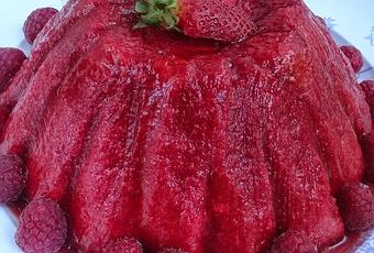 - Montaje: En el molde con las soletillas, verter la mousse hasta el borde y cubrir con más soletillas remojadas en el almíbar de fresas. Tapar y dejar enfriar en la nevera mínimo 6 horas.