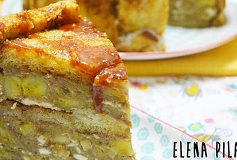 Pero gracias a la receta que he hecho para participar en el concurso de recetas con Panrico y Cerealia, que organiza Canal Cocina, he roto la barrera que me impedía hacer una tarta de ese tipo. ¡¡¡Al fin me he atrevido a elaborar una charlota!!! Aunque no ha sido la charlota propiamente dicha, aquella que se nos vendría a la mente nada más leer o pronunciar su nombre, el método de elaboración, en esencia, es el mismo. En este caso, en lugar de usar bizcochos de soletilla, he empleado pan de molde -que previamente he dorado en una sartén con un poquito de mantequilla y he endulzado con azúcar- y lo he rellenado con una mezcla de plátano caramelizado y queso fresco. Por último, la he acompañado de una salsa que, en mi opinión, es la que mejor encaja con el dulzor del plátano: una salsa de caramelo salado (por cierto, la preferida de mi madre, de hecho, fue ella quien me insistió en rematar este dulce con ella).