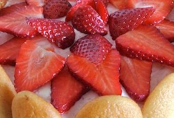 Ingredientes Bizcochos de soletilla (unos 30) 1 cucharada de Cointreau diluida en 3 cuch. de agua 250 g de fresas (más unas 6–8 fresas para decorar) 1/2 taza de azúcar glas 1 1/4 tazas de nata para montar {gelatina}