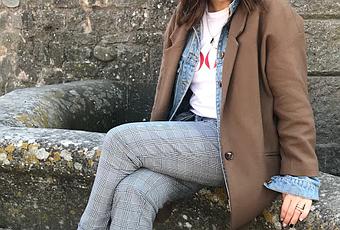 Checked trousers/ pantalones; Zara, Cazadora denim/ Denim Jacket; Berhska, Abrigo/Coat; Top Shop Zapatillas/Sneakers; ZaraColgante/Necklace; Be mine Anillos/Rings; Aristocrazy