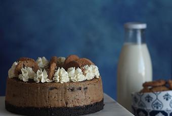 - En un bol aparte, picamos las galletas chips ahoy hasta conseguir un polvo fino. Añadimos a la mezcla de nuestro cheesecake e integramos.