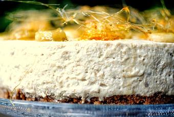 Engrasa con mantequilla un molde redondo desmontable y en la base pones la mezcla de galletas trituradas que has previamente preparado, presionándo hasta que veas que está firme, refrigera el molde por al menos media hora en la nevera.