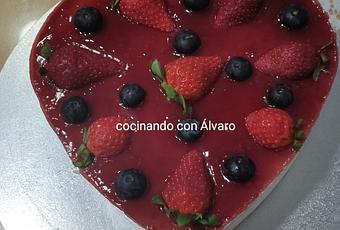 - Una vez cuajado nuestro pastel, le sacamos del frigorífico, y hacemos nuestro coulis de frambuesa.