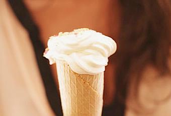 Pon la mezcla de la nata y queso en una manga pastelera con boquilla ancha y rizada (puedes hacerlo también con una cucharilla) y rellena cada cucurucho como si fuera helado.