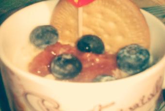Se cubre con trocitos de galleta y con otro poco de mermelada y algún fruto rojo que tengamos por la nevera...a disfrutar!!!
