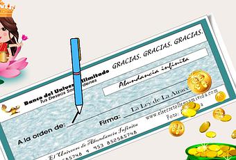 Ahora, si deseas realizar el Cheque de la Abundancia, por favor lee hasta el final:🌟 :: Imprimir este Cheque que os pongo o uno parecido, si no tenéis impresora se puede hacer a mano, o sea dibujarlo tu mism@🌟 :: Pondrás tu nombre o el de aquella persona por quien lo haces en la línea "A la orden de:"🌟:: Para no entrar en el libre albedrío de la otra persona, no pedirás nada para ella en concreto cuando lo realices.🌟:: Como es un acto de FE y CONFIANZA tampoco vas a pedir nada para ti, ni dinero, ni salud, ni amor, nada.🌟 :: Se trata de agradecer sin más, de confiar en que sea lo que sea que llegue será lo mejor.🌟:: Una vez puesto el nombre, no se pone nada más.🌟:: Guarda el Cheque donde sientas más oportuno.a) En tu caja de Deseosb) En tu mesilla de nochec) En la cómoda o closetd) donde te parezca... Ahí puedes guardar todos los Cheques que realices, yo aun conservo todos los que he hecho estos años.Si decides deshacerte de los anteriores puedes:🌟*Quémalos y entierra o tirar las cenizas al mar, a un río, etc. Dando las gracias por su trabajo.