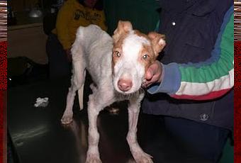 Chesco el pasado jueves era un ovillo de huesos, tiritando de frío en medio de un descampado. No sabemos cómo llegó allí, pero quizá fuera obra de algun alma despiadada. Con un poquito de comida , calor y cariño, sigue siendo , cinco días después, un saco de huesos pero con muchas ganas de vivir.Estamos en Sacedón, Guadalajara. Quieres adoptarle??