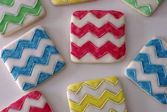 Son super fáciles de hacer. Yo me descargué una plantilla buscando en google "chevron pattern".El cómo hice las galletas y la glasa lo podéis ver aquí y aquí. Las galletas son de vainilla y la glasa de limón.