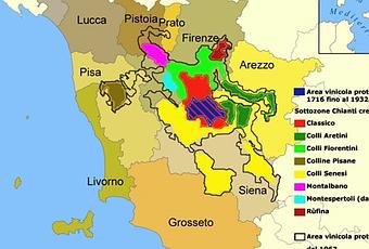 El Chianti es el más conocido y exportado vino italiano, un vino tinto fuerte que procede de una pequeña área en las colinas que separan Florencia de Sie na. El territorio del Chianti es una sorpresa de sabores y hermosos panoramas, lugar en donde las empresas vinícolas de calidad se han unido en un sistema funcional con pequeñas estructuras turísticas agrarias (los conocidos agriturismi, casas rurales).