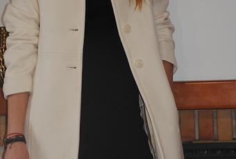 Con un look sobrio, Nuria se vistió para la ocasión con un vestido básico de corte midi, stilettos del mismo color y cartera de mano. Hasta aquí un look minimal, pero el punto fuerte es el abrigo de paño color crema. Una combinación infalible si no quieres complicarte pensando y probando, porque siempre funciona :)